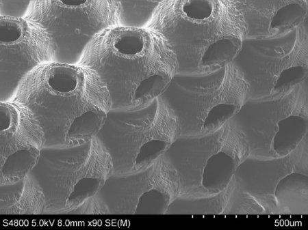 Schwarz-P細(xì)胞的細(xì)胞培養(yǎng)支架(反射電子顯微鏡畫面)