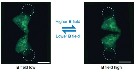 實(shí)驗(yàn)顯示,游泳者游泳者和微游泳者粘稠環(huán)境中表現(xiàn)令人非常滿意和驚喜。尤其是對(duì)微型游泳者的進(jìn)一步實(shí)驗(yàn)中,后者不僅可以攜帶“貨物”,還可像細(xì)菌一樣旋轉(zhuǎn)運(yùn)動(dòng)。