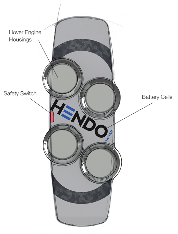 滑板可漂浮于鋁或銅等導電材質的U型滑道,主要基于“磁場架構”(Magnetic Field Architecture)技術,而動力由滑板底部的4個圓形具磁性的引擎提供。