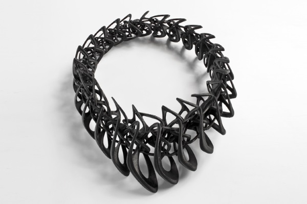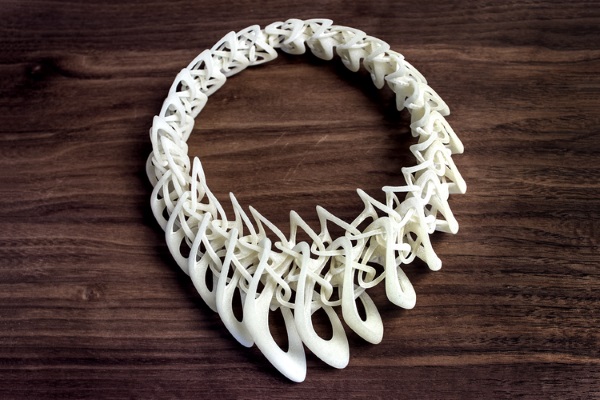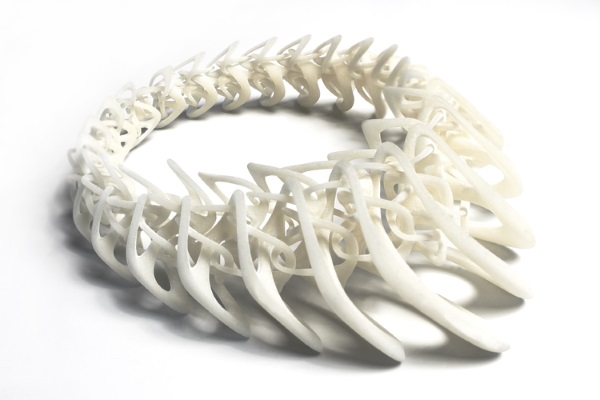這套名為LACE的設計作品,由25件各具特色的3D打印可穿戴式設計組成,主要是項鏈和戒指。為首的LACE設計是一件Tangens項鏈,它可以是黑色、白色或半透明色。這件繁復的設計是由很多互鎖件連在一起組成的,是Stratasys公司的Fortus 400mc FDM 3D打印機用柔性尼龍材料制作的。該Tangens項鏈售價850美元。