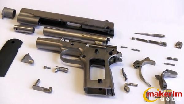 眾所周知,ABS材料或塑料打印的槍支,其持久性自然不能與真槍相比。因此,Solid Concepts公司利用3D打印技術,以經典的1911手槍為原型,成功的打印出了一把純金屬槍,連續發射50發子彈后依然能夠保證槍支完好無缺。