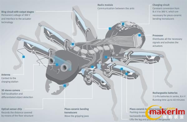 這隊螞蟻是Festo公司“仿生學習網絡(Bionic Learning Network)”計劃的一部分,對應“加入網絡(Join the Network)”主題。目前,Festo正在進行計劃中的另一個主題,即蝴蝶之間的互動。Festo的最終目標是創造出能在環境變化等條件下還能繼續工作并完成任務的智能機器人。