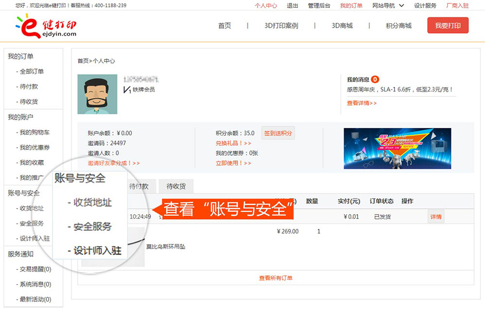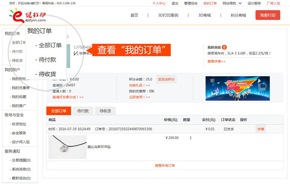 - 最新成交 深圳市3D打印訂單 135****3766 訂單金額¥529.64元 已付款成功