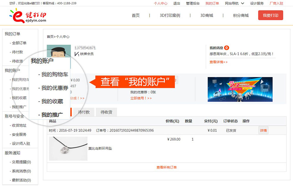 - 最新成交 深圳市3D打印訂單 138****2360 訂單金額¥622.98元 已付款成功